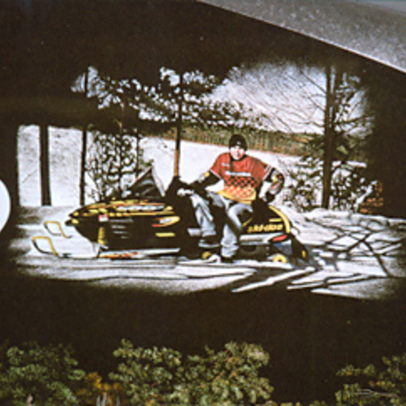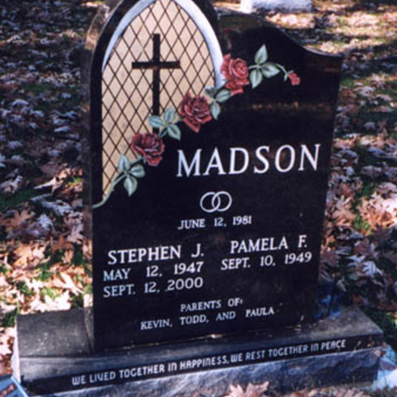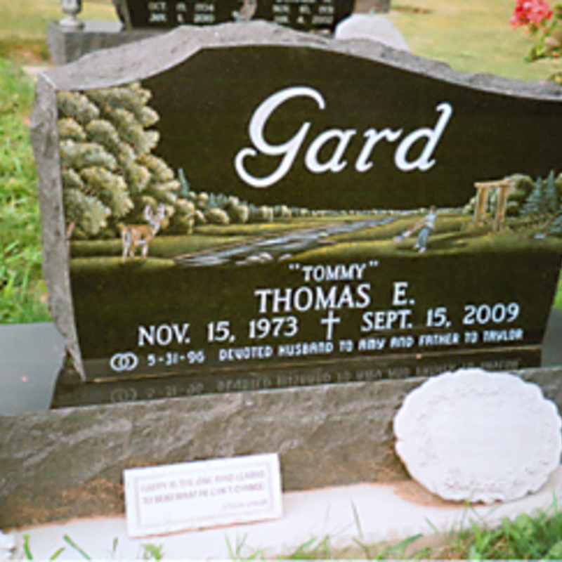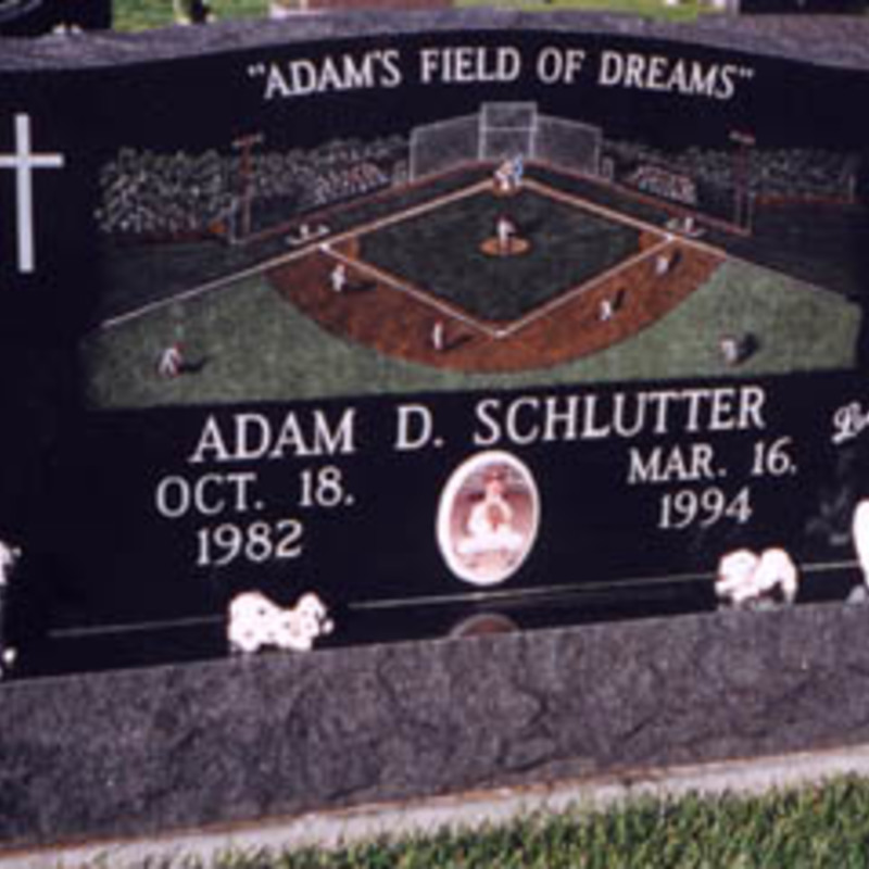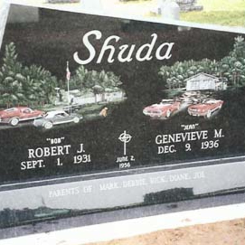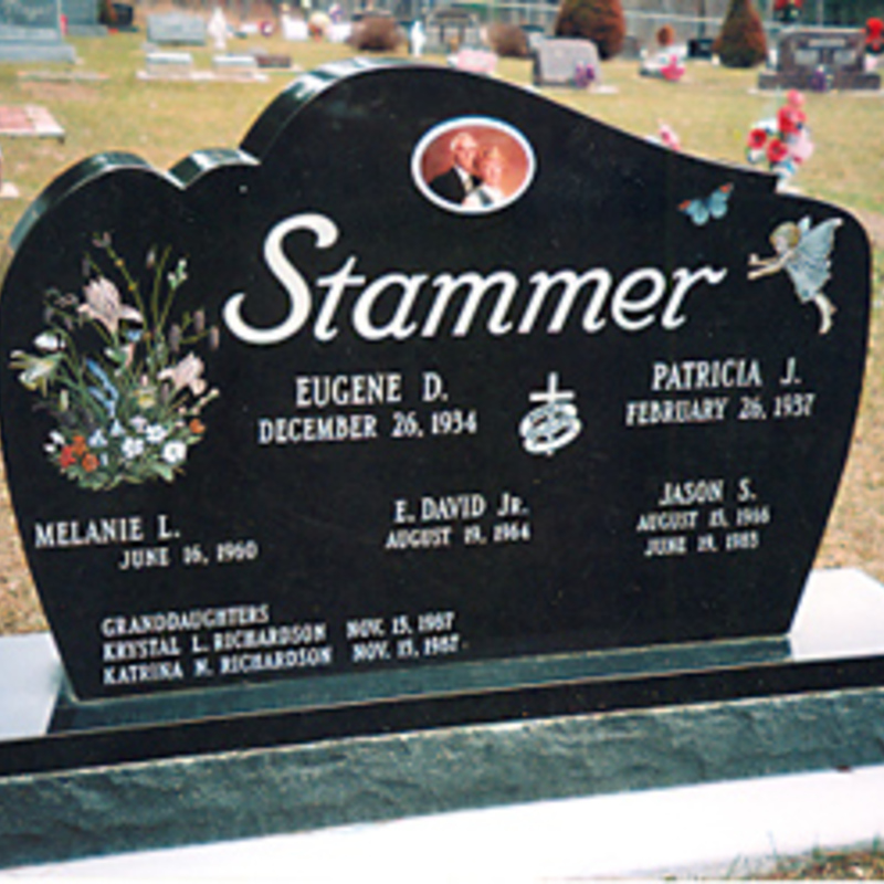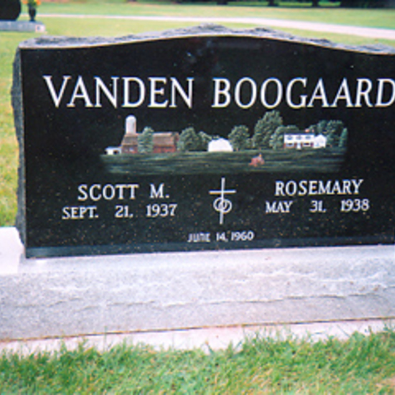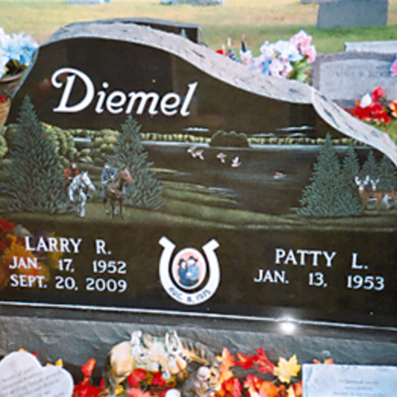 Staff artists create these very intricate etching designs. You may provide an image of your choice to personalize your monument or choose from one of our many designs including a picture of a church, a team of Belgian horses, roses, a motorcycle, an A-frame cottage or a man playing a guitar. We will help you create an image that commemorates the individual personality to whom we are paying tribute.